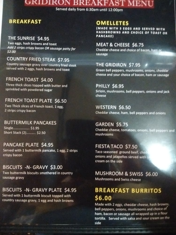 Welcome to the Gridiron Grill and Tap House, a hidden gem located at 2816 Main St, Springfield, OR. Here, you’ll find an inviting blend of American breakfast and brunch delights, perfect for starting your day right or enjoying a casual lunch. The menu features must-try dishes like the Country Fried Steak and Eggs, beautifully smothered in homemade gravy, or the Best Biscuits and Gravy you’ll find in Lane County. For those craving a taste of brunch, the French Toast Plate and scrumptious breakfast sandwiches offer delightful options. Customers rave about the friendly service, affordable prices, and the tavern's warm atmosphere, making it feel like a local's favorite spot. Join fellow patrons for Taco Tuesdays or indulge in delightful daily specials that highlight the house's creativity. Do yourself a favor and discover the flavors at the Gridiron Grill and Tap House!